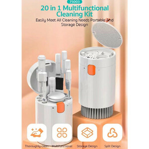 دسترسی به بسیاری از قسمت های لپتاپ، گوشی، هندزفری و... مشکل است و نمی توان به سادگی آن ها را تمیز کرد. بدون ابزار، در واقع این مساله امری غیر ممکن تلقی می شود. شرکت کوتتسی برای حل این مشکل، کیت تمیز کننده مدل 75003 را طراحی کرده است که به خوبی به واسطه گجت هایی که دارد به ما کمک می کند تا قسمت هایی که دسترسی به آن ها بسیار سخت و گاهاً ناممکن است، قابل دسترسی شوند و امکان تمیز کردن آن ها برای ما وجود داشته باشد. پک کیت تمیزکننده 75003 ابعادی برابر با 61x65x90 میلیمتر دارد که میتوانید آن را داخل کیف خود قرار داده و به راحتی حمل کنید. از کیت 75003 میتوان برای تمیز کردن کیبورد، هدست بلوتوث، تلفن همراه، لپ تاپ، محصولات دیجیتال و ... استفاده کرد. با دارا بودن این پک دیگر نیازی به سایر ابزارهای تمیزکننده ندارید. پک کیت تمیزکننده 75003 شکلی شبیه به یک استوانه دارد که ابزارها داخل آن قرار میگیرند. اجزای این کیت به شرح زیر میباشند: 1-کیس نگهداری محصول 2- برس تمیزکننده بزرگ در قسمت زیر کیس 3- صفحه پارچهای تمیزکننده صفحه نمایش 4-دمنده هوا (مناسب برای تصفیه گرد و غبار روی سطح دوربین) 5-میله کوتاه اکستنشن دمنده هوا 6-میله اکستنشن پاک کننده لوازم جانبی 7-محلول پاک کننده صفحه نمایش 8-برس موی کوچک با چگالی بالا 9-برس موی کوچک نرم 10-کلیپس برای درآوردن سویچ کیبورد 11-سوزن سیم کارت 12-کلیپس برای درآوردن کلیدهای کیبورد 13-برس کوچک آرنجی 14-سری استوانهای بزرگ برای تمیزکاری داخل کیس هندزفری 15-یک برس کوچک برای تمیزکردن شکافها 16-یک نوک تیز برای تمیز کردن محلهای حساسی مثل داخل گوشی هندزفری 17-سری استوانهای کوچک برای تمیزکاری داخل کیس هندزفری 18-برس تمیزکننده پیچی شکل 19-برس تمیزکننده صفحه دوربین 20-میله بلند اکستنشن دمنده هوا
