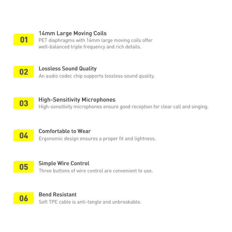 شرکت Encok که یکی از زیر مجموعه های کمپانی خوشنام Baseus میباشد با ساخت هندزفری C17 باعث شده تا بتوانید به راحتی موسیقی مورد علاقه خود را با کیفیت بالا گوش کنید. این هندزفری از طریق پورت Type-C به گوشی شما متصل میشود. امروزه به دلیل کم کردن هرچه بیشتر قطر گوشیها پورت جک 3.5 میلی متری از گوشیهای جدیدی که به بازار عرضه می شوند حذف شده و پورت تایپ سی موجود روی گوشیها به عنوان ورودی هندزفری هم مورد استفاده قرار میگیرد. کانکتور هندزفری باسئوس Baseus Encok C17 Earphones NGCR010002 نیز از همین نوع است. کابل 1.1 متری هندزفری از جنس TPE و دارای روکش بافته شده پلاستیکی میباشد. این طراحی انعطافپذیری و در عین حال مقاومت کابل را در برابر پارگی و کشش تضمین میکند. این حالت کنفی کابل این مدل هندزفری یکی دیگر از مشکلات هندزفریهای سیمی که گره خوردن آن ها است را نیز برطرف میکند. سری های هندزفری سیمی باسئوس C17 از نوع نیمه تو گوشی هستند و از جنس پلاستیک ABS ساخته شدهاند. با در نظر گرفتن حالت داخلی گوش این سریها نیز دارای اندکی زاویه میباشند که به خوبی داخل گوش جای میگیرد. این طراحی سبب میشود که صداهای مزاحم اطراف ایزوله شوند و سری هم به خوبی در گوش کیپ شود. همه این عوامل تاثیر بسزایی در بالا رفتن کیفیت صدا و تجربه کاربر خواهند داشت. روی کابل این هندزفری یک پنل کنترلی قرار دارد که میکروفون نیز درون همان تعبیه شده است. یک کلید سه قسمتی نیز روی این بخش قرار دارد. این قسمت با علامتهای +، o و - مشخص شده که کلید + و - و برای زیاد / کم کردن صدای موسیقی به کار میرود. کلید دیگر یک کلید چند منظوره است که میتوانید دستورهای مختلف از جمله پخش/توقف موسیقی، رفتن به موسیقی بعدی/قبلی، پاسخ دادن یا پایان تماس، رد تماس و فعال کردن دستیار صوتی را با آن اجرا کنید. این هندزفری دارای درایور 14 میلی متری دینامیک میباشد که از لایه های فرکانس بالا، فرکانس متوسط و فرکانس پایین تشکیل شده است. صدای منتقل شده توسط این Coil شفاف و واضح است و برای استفاده روزمره جوابگو خواهد بود. دیافراگم های پلیمری این هندزفری دارای فرکانس سه گانه متعادل و تفکیک صدا مطلوبی است. میکروفون همه جانبه این هندزفری با حساسیت بالا، تماس واضح و دریافت صدای دقیق را تضمین می کنند.