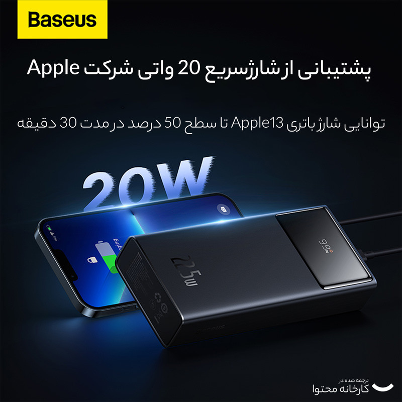 | امکانات و قابلیتها | پشتیبانی از فناوری شارژ سریع QC و PD - سطوح ایمنی چند گانه - دارای 2 درگاه USB و 1 درگاه Type C خروجی - صفحه نمایش دیجیتال نشانگر درصد باتری - حداکثر توان خروجی 22.5 وات |