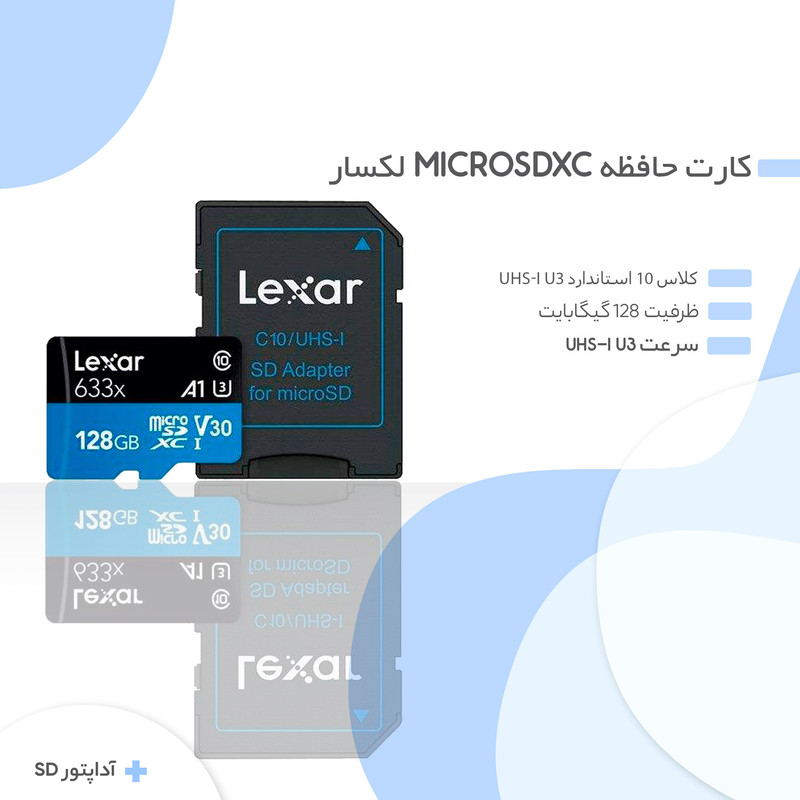 کارت حافظه microSDXC لکسار مدل V30 A1 کلاس 10 استاندارد UHS-I U3 سرعت 95MBps ظرفیت 128گیگابایت به همراه آداپتور SD