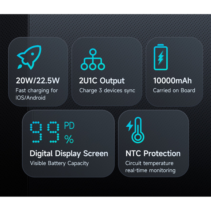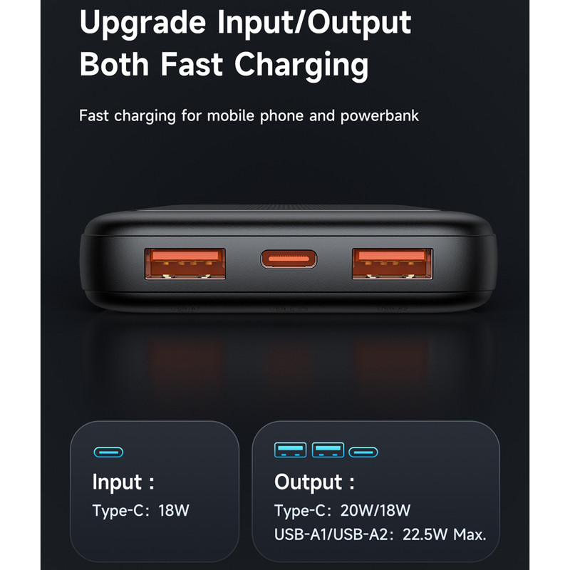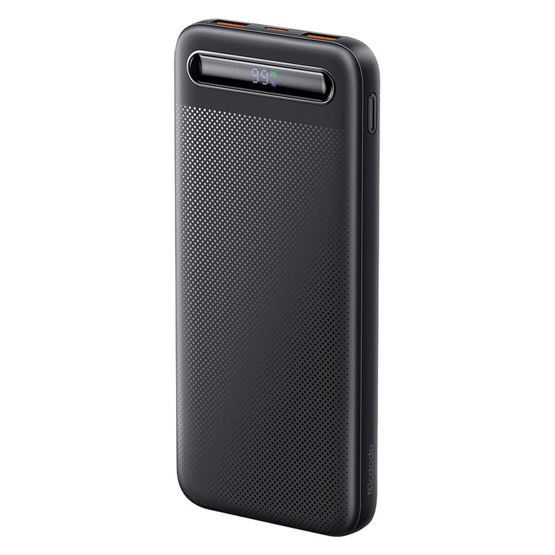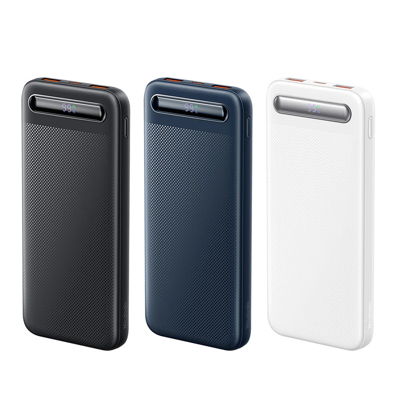 پاوربانک مک دودو 22.5W مدل MC-388 ظرفیت 10000 میلی آمپر ساعت با توان 22.5 وات دارای قابلیت فست شارژ آیفون و اندرویدی است و امکان شارژ 3 دستگاه همزمان را دارد.دارای 3 خروجی که 2 پورت USB و یک پورت تایپ سی که هم امکان شارژ خود پاوربانک را دارد و هم شارژ موبایل و تبلت.این پاوربانک از پروتکل های شارژ سریع PD/QC/SCP/FCP/AFC/VOOC/Apple را دارد و با انواع برندها سازگار است.زمان شارژ این پاوربانک با شارژر 25/33W تایپ سی PD و کابل تایپ سی توان بالا حدود 3.5 ساعت خواهد بود.طراحی بسیار شیک و مینیمال و لاکچری و اسلیم از ویژگی های این پاوربانک است.انتقال حرارت بسیار عالی و عدم تجمع حرارت نیز از خصوصیات MC-388 است.این پاوربانک با رنگهای سفید،سرمه ای و مشکی عرضه شده که با کدهای MC-3880/MC-3881/MC-3882 تفکیک می گردند.پاوربانک داراي تراشهای هوشمندی است که با 9 قابلیت محافظتی ، محافظت کامل از دستگاه در برابر اتصال کوتاه ، نوسانات آمپر و ولتاژ و نوسان حرارت بعهده داشته و میزان جریان و ولتاژ لازم برای هر دستگاه را بصورت اتومات و سريع تشخيص میدهد.دارای صفحه دیجیتال نشانگر درصد شارژ پاوربانک است.دارای ابعاد 14.2cmx6.73cmx1.63cm است.